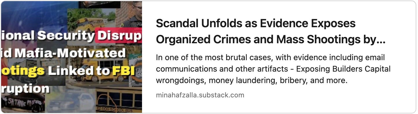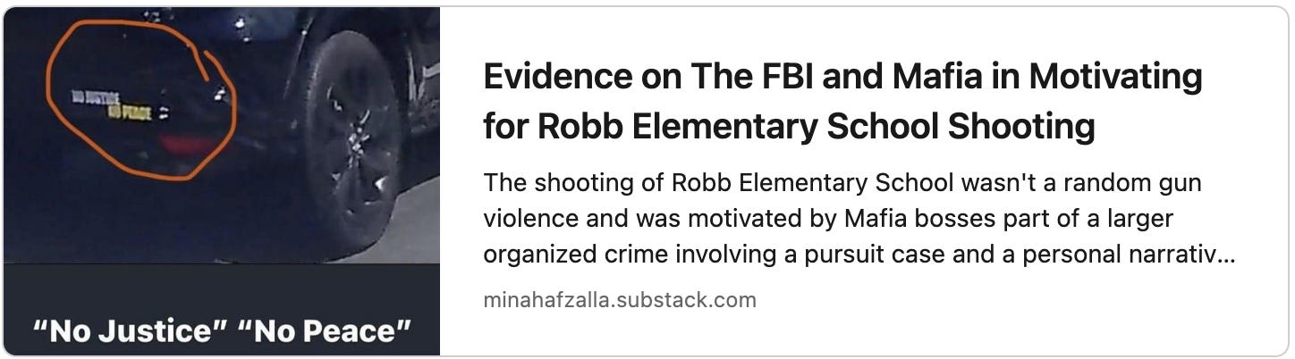 I’m not sure what type of evidence does the Bureau requires in order to act upon crimes as these, not only that as an isolated incident but its associated organized crime that involves Mafia leaders motivating for mass school shootings among other stream of crimes.