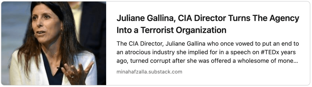 Juliane Gallina, CIA Director Turns The Agency Into a Terrorist Organization