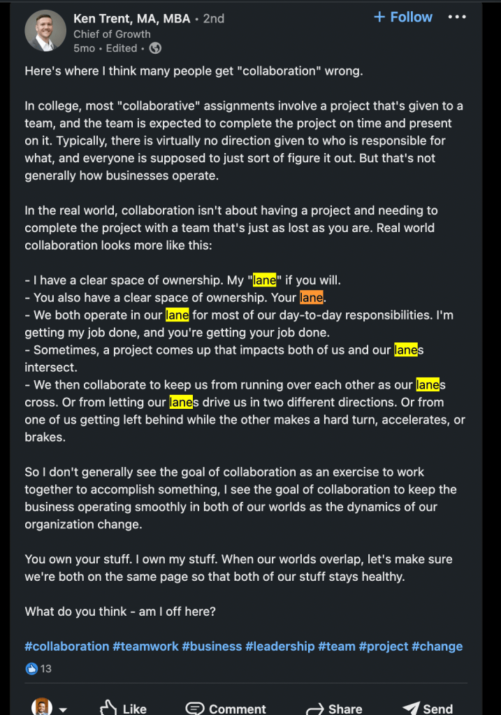 And just like Ken Trent included “Lane” several times in his post on LinkedIn, they had the priest of St. Philopater & St. Demiana Coptic Orthodox Church (Lynnwood, WA) incorporate the same word in the same exact manner of Ken Trent by saying “stay in your lane” multiple times throughout his liturgical talk. See below.