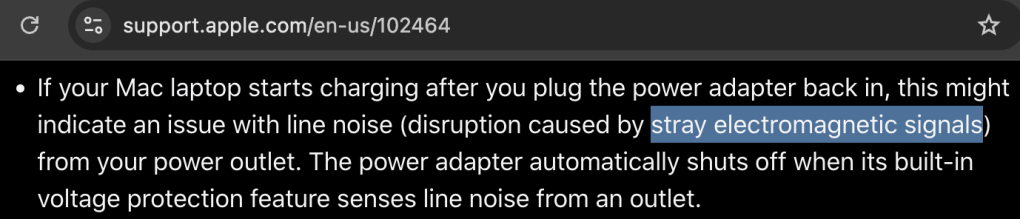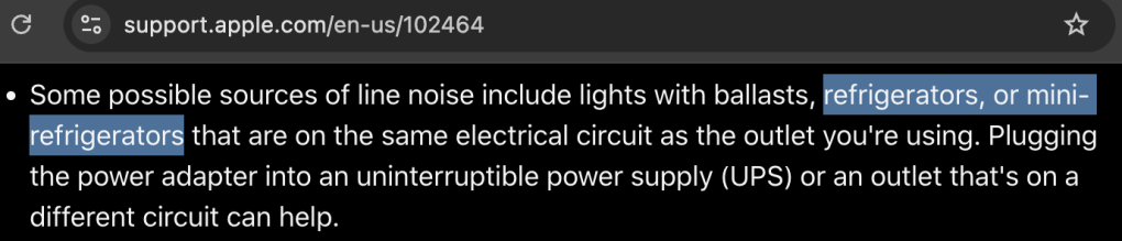 Whereas the below continuation of Apple’s article includes refrigerators in their guidance on how to solve your Macbook charging issue that exactly matched my documentation in regards to the abuse I went through in my retail job.