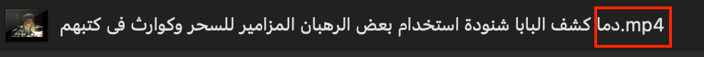 The first keyword of a filename of a religious video by Pope Shenouda III I had downloaded in support of the case documentation has been inadvertently altered to represent death threat through cybercrime.