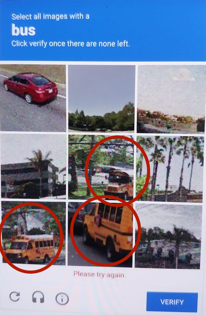 Some of them are conveyed through reCAPTCHAS as below by prompting to select the “buses” in the picture where “School Buses” are the only images displayed in those reCAPTCHAS that I must click on in order to authenticate and pass the prompt.