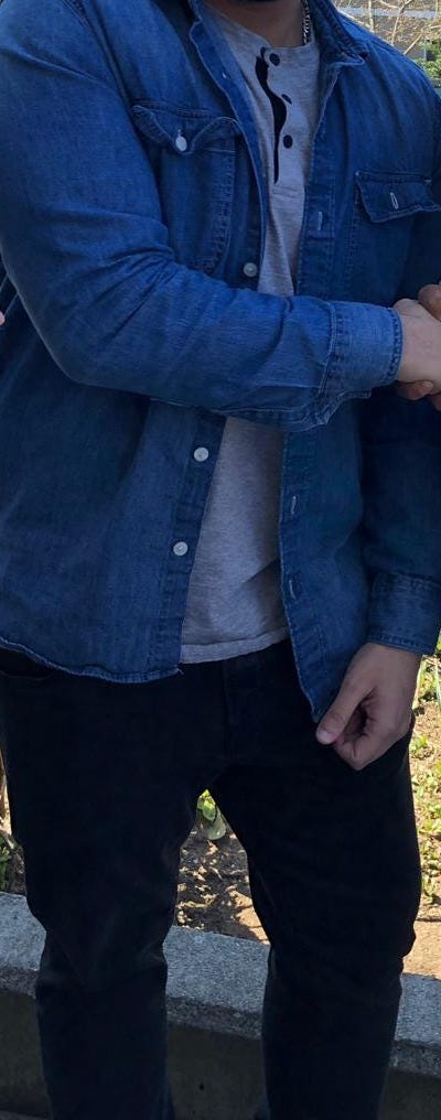 As I continued to get dressed, I put on a dress shirt that I left unbuttoned for a considerable amount of time while I was still inside my apartment. Similar to the below.