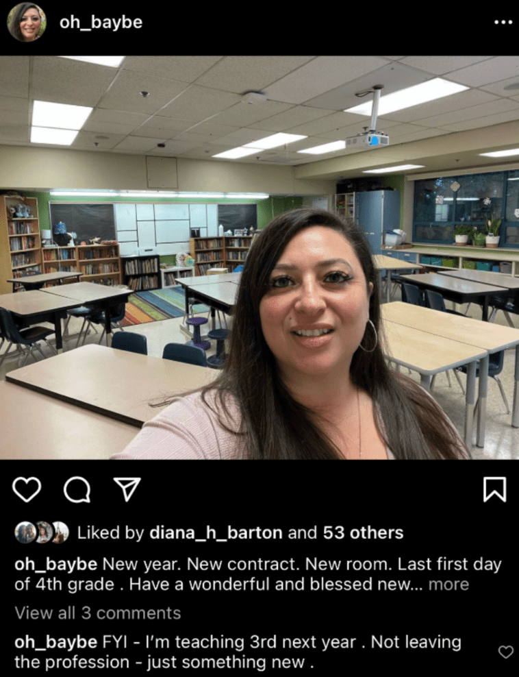- Does she have any implicative captions in the bio of her accounts? Such as “balance kids and career”.