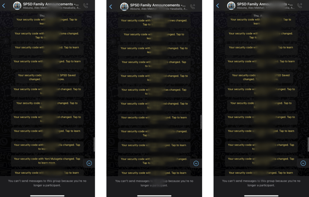 No wonder a significant number of individuals in the church WhatsApp groups have bulk re-registered their accounts on WhatsApp that triggered the application to display “This contact’s security code has changed” which indicate that they have simply deleted their account and reactivated it again, either on the same device or a new device, and such notification was in bulk on the group as if it was an organized campaign of re-registering their accounts on WhatsApp. See screenshots below.